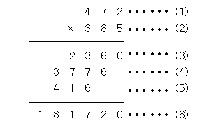 - (세 자릿수) × (세 자릿수)는 다음과 같은 과정을 통하여 이루어진다. (1)과 (2)위치에 들어갈 세 자리 자연수가 주어질 때 (3), (4), (5), (6)위치에 들어갈 값을 구하는 프로그램을 작성하시오