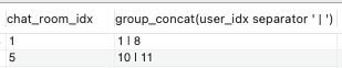 SELECT chat_room_idx, group_concat(user_idx separator ' | ')
